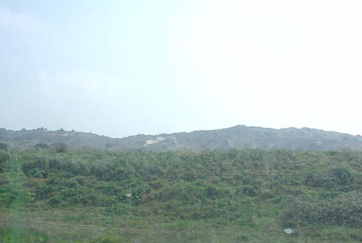 The author (trying to squint in the sun), against a background of Jersey Royals. The view here stretches towards the Atlantic coast, encompassing St. Ouen's Bay and Corbiere Point (on the left-hand side of the picture). Just inland from St. Ouen's Bay is a nature reserve and ancient dune complex. The higher ground shown below, seen from the coastal road, is actually a raised beach formed by isostatic uplift during tectonic movement, and fluctuating sea levels. Sand has been blown from the bay area as much as 2 km inland.
