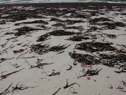 The seaweed has been collected for centuries (a process called “racking”) by locals for use as a soil improver. Kelp, from the kelp forests offshore, is littered throughout the intertidal zone. The kelp forests play host to and provide shelter for a number of other different species.