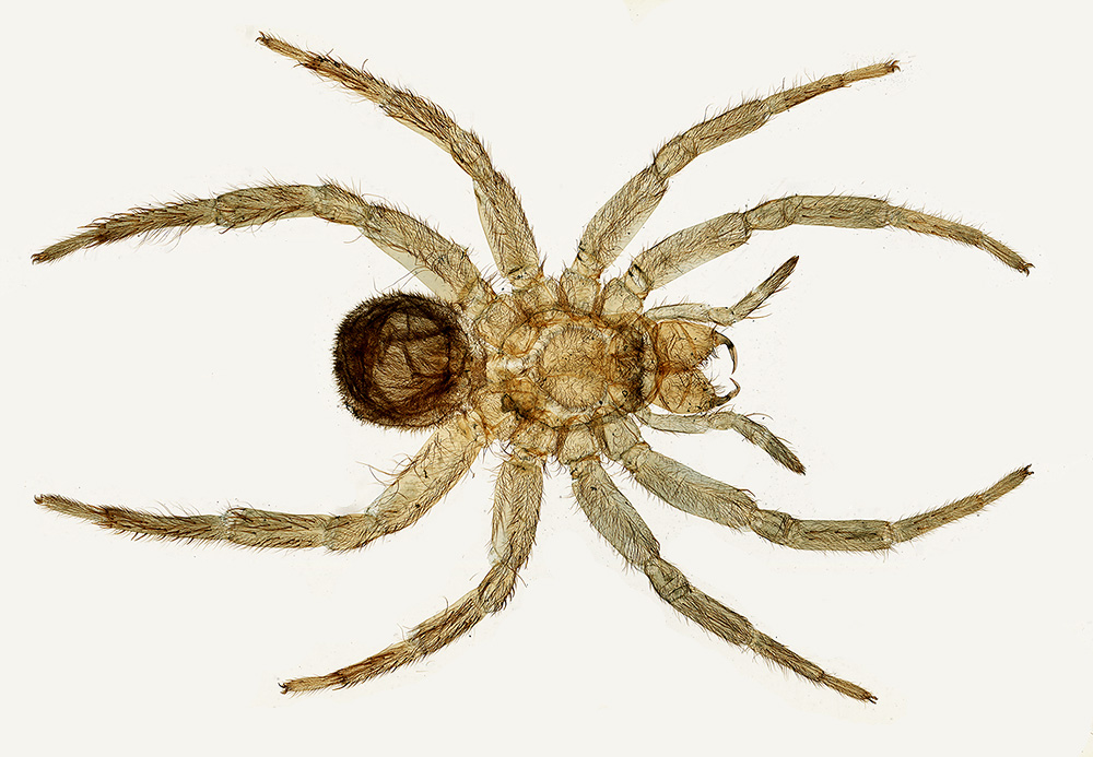"Spider, male, Clubionidae" Unnamed mounter. Length 15.5 mm