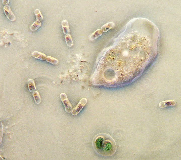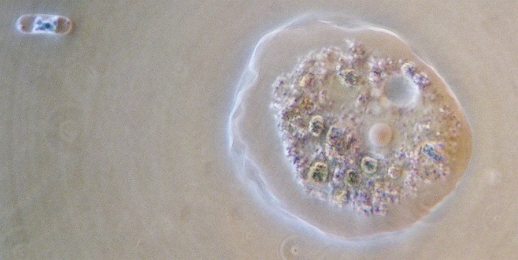 | Both algal cell and Amoeba depicted in semi DF and offset COL. |