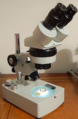 Micscape Review April 2007: Three stereo microscope models / designs compared (Meiji SKC-BT, Meiji EMZ-1 (Greenoughs) and Leica MS5 (CMO)).