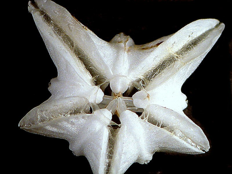 Next, let’s go back to sea urchins, only this time to flattened ones. Any one interested in marine life is very likely to have seen or even possess specimens of sand dollars and, of course, the entire shell is calcareous. However, here we’re going to look at some incredible “mouth parts”. As mentioned above, the regular urchins have the elaborate Aristotle lantern as “mouth parts” . These are also very elaborate but, as one would expect, flattened.