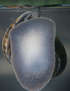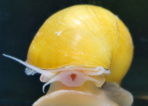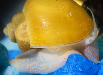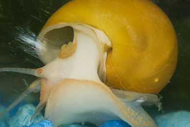 The spike-topped apple snail, Pomacea bridgessii, is a common addition to almost any freshwater fish tanks. Originating from South America, mainly the Amazon River system, there are many varieties of apple snails. Also known as mystery or Inca snails, these snails come in a variety of colors. Preferring to remain submerged, apple snails are equipped with gills that allow them to remain underwater for the majority of their life. These snails will come up to the water surface and breathe air through their tubular siphon but the siphon is not their primary way of breathing; the siphon is used when there are low oxygen levels in the water.