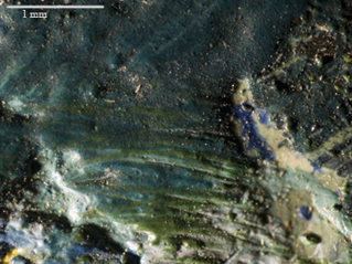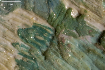 | Acrylic is like oil paint in the fashion that it allows for dimension and depth to be created within the paint samples. However, acrylic has a very flat, matte surface. This results in the reflecting light to be more diffuse. A big distinguishing aspect of acrylic paint is the "gritty" look given due to the particals in the paint. The images are of acrylic paint on canvas. |