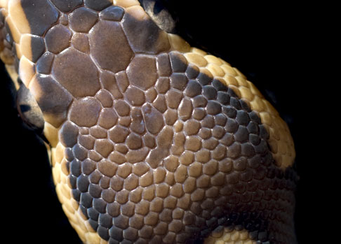 I used a nikon D80 camera with multiple lenses (60mm dedicated macro, 38mm thimble lens and a 80-120mm zoom lens). Photographing her skin was easier than photographing her because it didn't move. I used a glass slide to keep the skin flat. When photographing Aspen herself i used an electronic fiber-optic flash system that had three heads on it. When photographing her shed skin i used a tungsten based fiber-optic light source.