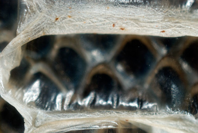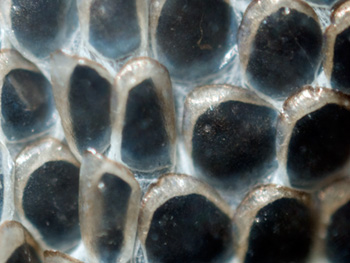 Above (2): Belly scales, Above (1): Back scales from a shed skin