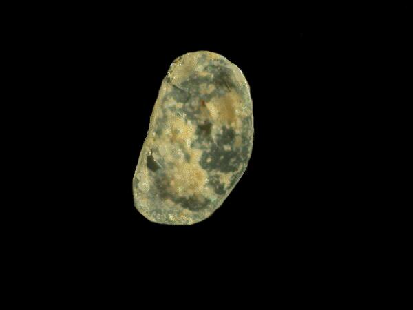 When I went over to her office to get the sample, she said: “I wouldn’t have done this for anyone else. If there’s nothing in it, you can add it to the soil around one of your houseplants.” The sample was a rather undistinguished gray, dried mud color and didn’t look very promising. I dumped half of the sample into a Syracuse watch glass and began examining it with my dissecting microscope. Gray, brown, graying-brown, and then a tiny bit of green which was a dried bit of moss or some kind of aquatic plant.