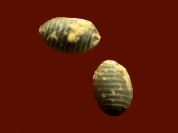 I strongly suspect that the color of ostracods is helpful in identification only in living specimens. I now have in one pond sample, a number of ostracods with a distinct forest-green color. However, in taking bottom samples to examine valves, I find none with pigmentation.