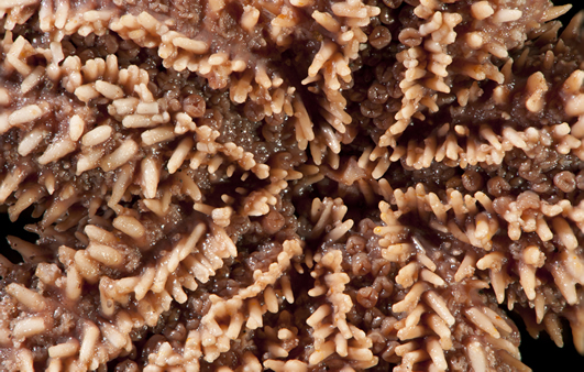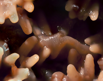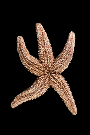 The star fish was a preserved specimen, soaked in warm water to rehydrate. The starfish was placed on a lab jack with two fiber optics — one on each side. As a background, black velvet was used to enhance contrast. The combination of a Nikon D700 and a 20,38, and 48mm thimble lens were used to get different magnifications for certain parts of the starfish. Photoshop CS5 and Camera Control Pro 2 were used to capture and edit the images.