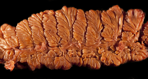 Cross section of leg shows: (from bottom to top) pyloric caeca, gonads,radial canal,and tubefeet.