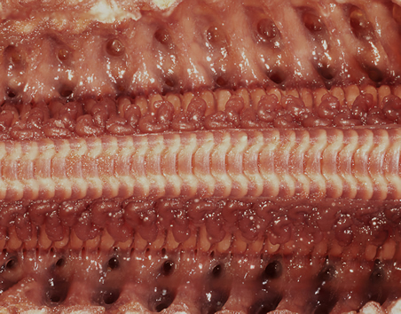 On the skin of the starfish, there are spines and gill like projections that act as lungs. The gills take oxygen from the atmosphere and transport it into the body. On the topside of the starfish there is a spot of skin called the madreporite. The madreporite’s job is to bring water into the body for respiratory purposes