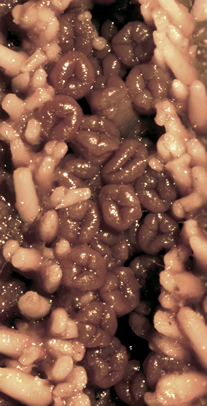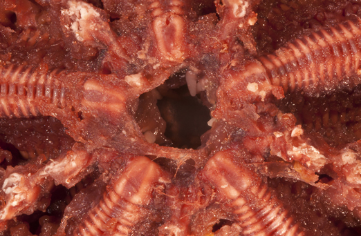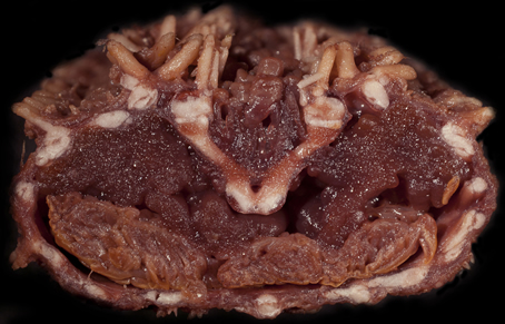 ring canal - this is the top view of the ring canal where the stomach and legs of the starfish are attached.