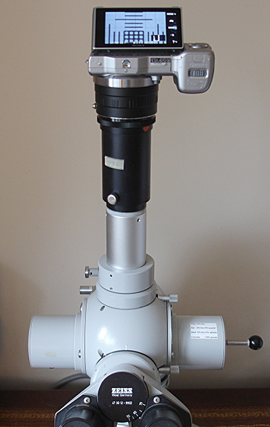 Sony NEX-5N body only shown on a Leica S series stereo (connected via a NEX to C mount adapter) and a Zeiss Photomicroscope III (connected via a NEX to Nikon bayonet adapter to a conventional third party 35 mm film photomicro' adapter). The couplings for both use commercial adaptors, are very sturdy and have been carefully shimmed where needed to remove any last trace of detectable lateral or rotational flex.