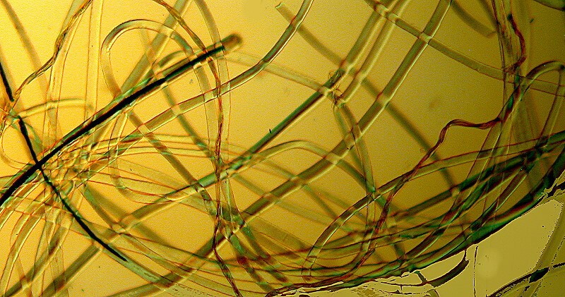 There is also still the issue, of granules, pigments, and ovoid structures which are common in the cortex. Furthermore, I have noticed in perusing the slides and samples that there are extremely thin straight hairs, thick straight hairs, thin curved tangled hairs which almost look like cotton fibers, thin pointy hairs, thick tapering pointy hairs, extremely delicate needle-like hairs, and samples that have 3 or 4 of these all mixed together. So, I’m going to give you a sort of catalog of some of the above with absolutely minimal comment (well, nearly) and then as a special treat, at the end, I’ll show you some Platypus hair and amazingly a cross section of a Peccary hair. So be nice and don’t skip to the end; that would be like jumping to the chocolate rum cake dessert without having eaten your Brussels Sprouts.