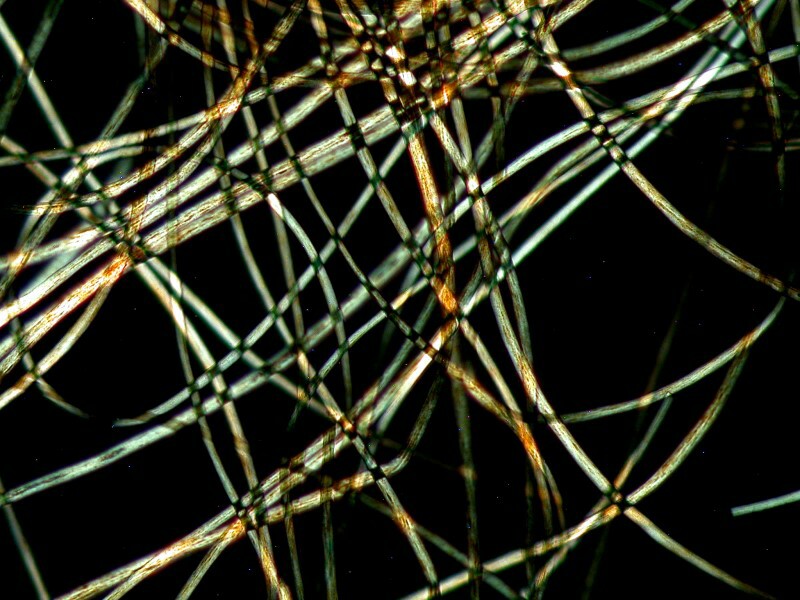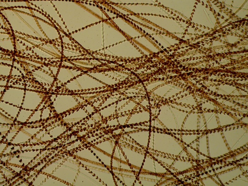 Vicuna hair exemplifies the old phrase: “Oh, what a tangled web we weave...” Like the Camel hair, we find lots of thin hairs forming a virtual mesh and again I wonder if this has to do with temperature regulation, only this time principally cold rather than heat. However, we need to remind ourselves that the deserts get quite cold at night and the high mountain sun is very intense during the day, so these kinds of hair arrangements probably provide a dual function.