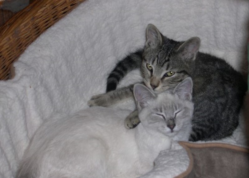 Vladi, short for Vladimir, was our wonderful, gentle companion for eighteen years. He contributed not only hair samples when I brushed and combed him each morning, but he was a quiet source of support and inspiration. He would sit on a table next to my computer keyboard when I was working on articles or images for Micscape. He also had his own chair in my lab where he would sit contentedly while I puttered. Ten days ago, he collapsed and died. He is greatly missed. In the 53 years Adri and I have been married, we have never been without cats and/or dogs. While, there can be no substitute for Vladi, we decided that we needed companionship and found two kittens who needed rescuing at the Animal Shelter.