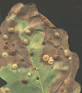 Leaves with galls and microfungi scan well. Even at 300 dpi the scan will capture the depth and detail well enough to crop the master scan to highlight detail (above).