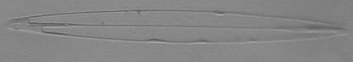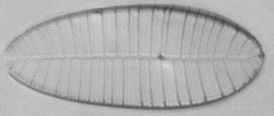 The pictures were taken on a massive vintage Czech MEOPTA microscope, a black monster with 5 cm diameter focusing wheels. I really like this instrument very much. It has a three-lens condenser with N.A. 1.40. In order to take the photographs I have used a CCD computer camera (PS39 camera by the COMPRO company, price less than 100 UK pounds in Germany). The camera objective was removed and the camera was positioned just above the phototube of a Russian LOMO trinocular tube fitted to the MEOPTA microscope. The image can be caught by a mouse click and immediately transferred to the computer. The LOMO trinocular tube can be switched to a position where it shows a magnified image of the objective's rear lens. This is very helpful in order to check the illumination as described above. There is almost no difference between the visual impression and the photographs.When you have a look at the high-resolution photograph of Amphipleura pellucida you might admit that the famous dot-pattern is already coming out, in particular when you turn the picture 90° counterclockwise. But possibly this is just a symptom of a severe dottitis after continued dot-searching activities and at the same time a warning signal to return back to a more real world with nice but totally undotted friends and family ...