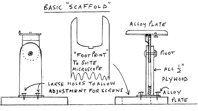 Some of you have expressed difficulty with alignment of camera to microscope, so I have listed here some golden rules that should sort this problem out.Whatever contraption you make, it must have in-built adjustment to compensate for any errors in construction.