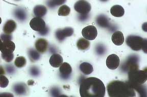 An individual cell of the algae, ca. 10µm in diameter (objective 40x)
