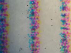 What you print the file on will affect the accuracy. The quality of the printer (dpi - dots per inch) is a limiting factor. The theoretical smallest grid you can print is one with alternating dots (i.e. a 300 dpi printer can only do a 150 lines per inch grid, a 1200 dpi laser printer has one dot about every 21 µm). A high quality paper, or photographic paper, will reduce the ink 'bleed', giving sharper lines. Some inkjet printers are changing their technology, with the ability to vary the amount of ink per dot; effectively making smaller dots. However, most inkjet printers have a standard sized dot. HP printers are typically 40-60 µm (depending on paper bleed). Thus, with my printer, the 500 µm grid is the smallest useable image. However, the printer dots themselves can also be used as a proximate ruler. You may notice that on my printer the lines are not evenly spaced. I suspect this is an interpolation between metric and English units of measure. Because of this I measured across two lines when creating my ruler.