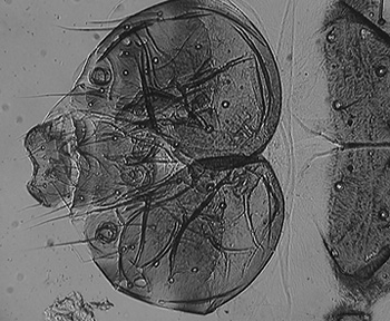 Head of water beetle: 3.5x objective, 7x eyepiece