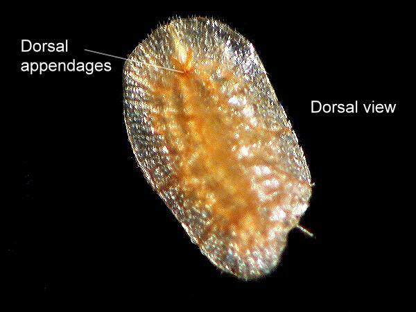 You will notice that they have not yet developed the posterior “feelers” that are to be seen in a larger, and presumably later, stage of development.