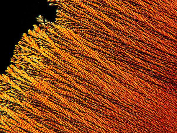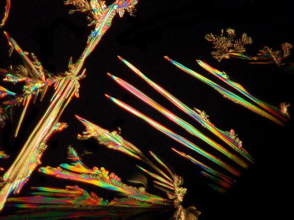 So, back to the ascorbic acid crystals. Micro-crystals have long been not simply the subject of scientific investigation, but have appealed to the aesthetic dimension of our humanity as well and some photomicrographers have given their creative works highly imaginative and sometimes descriptive titles. I may do that here, but I warn you that you may find some ultramicroscopic whimsy involved. I am drawn to artists, such as Joan Miro, who had the delicious audacity to poke fun at the self-seriousness of his artistic fraternity by giving his works titles such as “Blond Woman Combing the Hair of her Armpit by the Light of the Moon”, but who can compete with that? So, I shall restrain myself and let you make up your own titles.