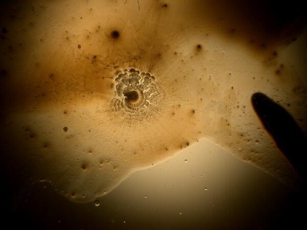 Hang on, it gets weirder. A few weeks earlier, I had sent a packet of forams to a friend of mine, but then I noticed one vial still sitting on my lab table. In packing I had overlooked it. So, I opened it up and scattered some forams across the slide and added a drop of ascorbic acid. Here are 2 results.
