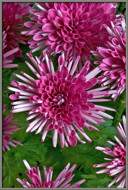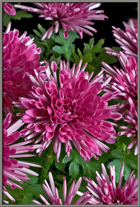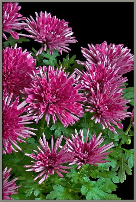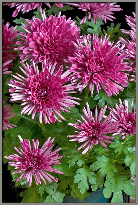 spoons, and pinkish-white quills. Chrysanthemums belong to the