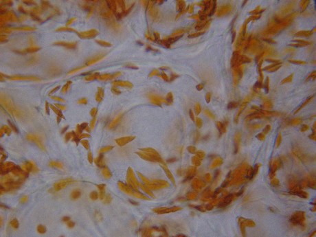 Fig.4: Chromoplasts seen in cells from a rose hip.