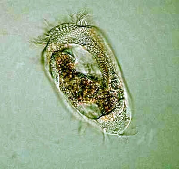 In addition, there were several specimens of a medium-size ciliate of an elongated ovoid shape which have a transparent “nose cone” at the anterior end.