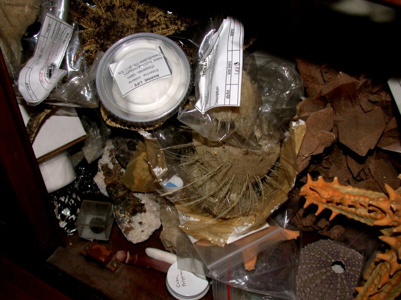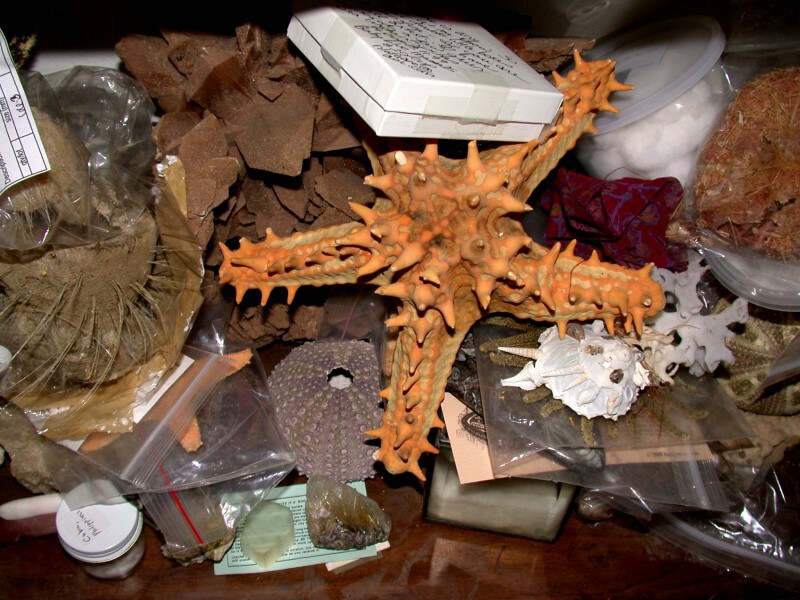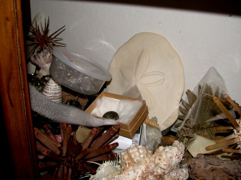 Up on the second floor of our house, I have in the hallway a sizeable cabinet, with 3 shelves and a glass front, for which I paid the extraordinary sum of $25. It is well-used, but in nice condition and serves as a highly cluttered display for natural history items ranging from minerals, fossils and crystals to sea urchins, glass sponges, starfish, shells, and even a feather star or two plus other odds and ends that make opening the door an event of discovery. If cluttering were one of the Seven Deadly Sins, I would be done for; neatness is not one of my virtues, yet oddly my chaos is rather well-organized most of the time in that I can usually find what I want which, at times, amazes even me. Recently, however, I decided that it might be an enjoyable project to do a photo inventory of my cabinet of curiosities and share the results with you. However, I’m willing to make a sizeable wager that a single essay won’t be sufficient to cover the contents, so screw your courage to the sticking point (whatever that means) and prepare yourself for a series of rambles.