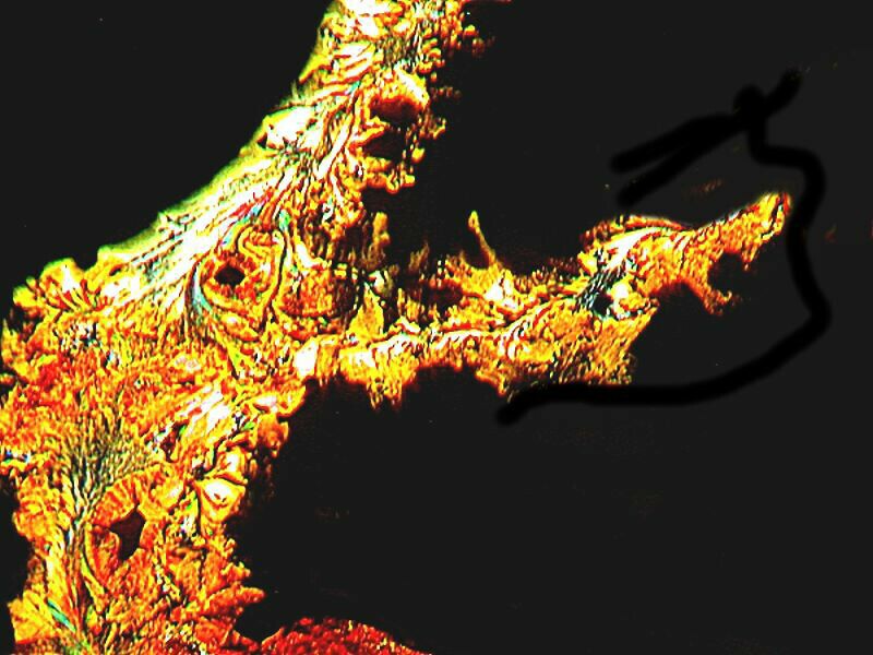 Images that provide this sort of entertainment for us are much more revealing than Rohrschach tests and also challenge the powers of our creative associationism. However, there have to be some rules. At least 10 other people have to read your title for or description of the image and say that they can also see it. However, they are free to propose alternative titles or descriptions which, of course, will be wrong if they differ from mine, even if they have 127 other people who agree with them. As it happens, and fairly frequently at that, I can have a particular association with an image and have a friend look at it and say that it suggests something different to him or her and indeed, I can often understand how that might be and this can happen multiple times with the same image.