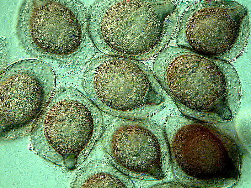 For the super macho types, there is yet another nightmarish attack on the ego in the male role in the anglerfish. Here we discover what has been described as “sexual parasitism”. The male, who is much smaller, grasps the female and attaches himself to her underside near her genital orifice. However, she retaliates by imprisoning him, growing tissue around him thus enslaving him. He provides sperm for fertilizing her eggs and she provides food for him. She produces a gelatinous string of eggs which are released into the nearby water and the male releases sperm which ferilizes them.