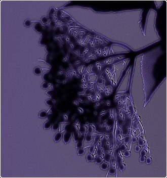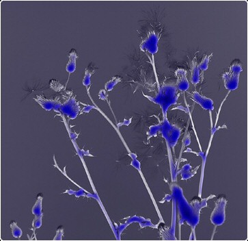 Wild berries and thistle heads converted to black and white and blue 'neon glow' applied, the 'neon glow' effect
