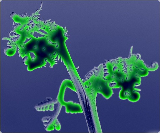 A fern plant converted to black and white and green 'neon glow' added.