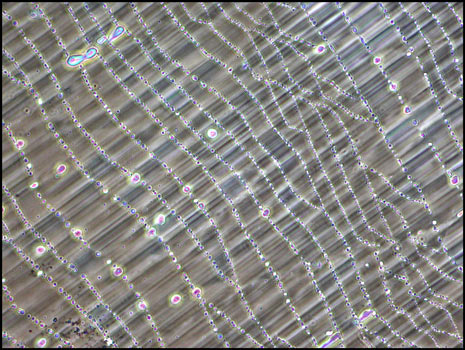 When part of the gray area in the above image is viewed at a much higher magnification, using phase contrast illumination, the result is shown below.