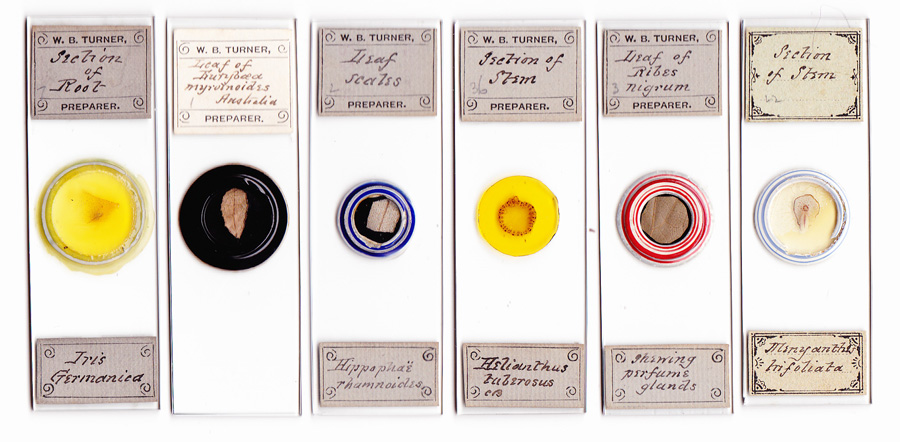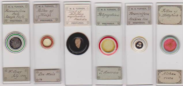 Turner slides, showing subjects ranging from diatoms to human pathology. His diverse interests, far from fully illustrated here,