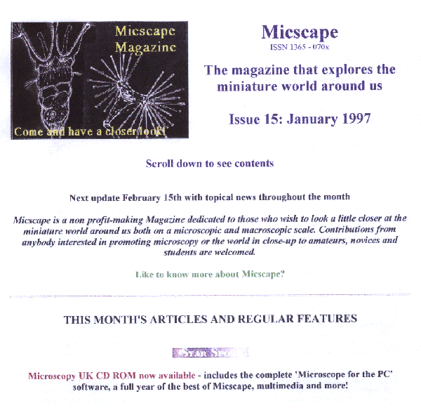 | Copyright ©1995 - 2002, Microscopy-UK / Micscape. Articles and material are copyright of the contributors. | ||